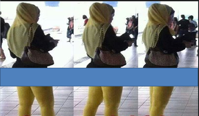 1- Wanita yang memakai pakaian tipis sehingga kelihatan warna kulit.
